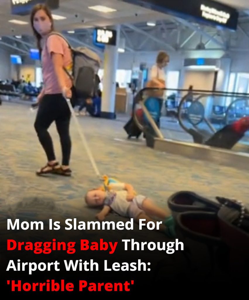 A video of a mother dragging her toddler through an airport on a leash has sparked a heated debate about parenting techniques. The clip, which has gone viral on social media, shows the mother pulling her child along the floor after the toddler refused to walk. While some viewers defended the mother’s actions as a practical solution, others labeled it as poor parenting.