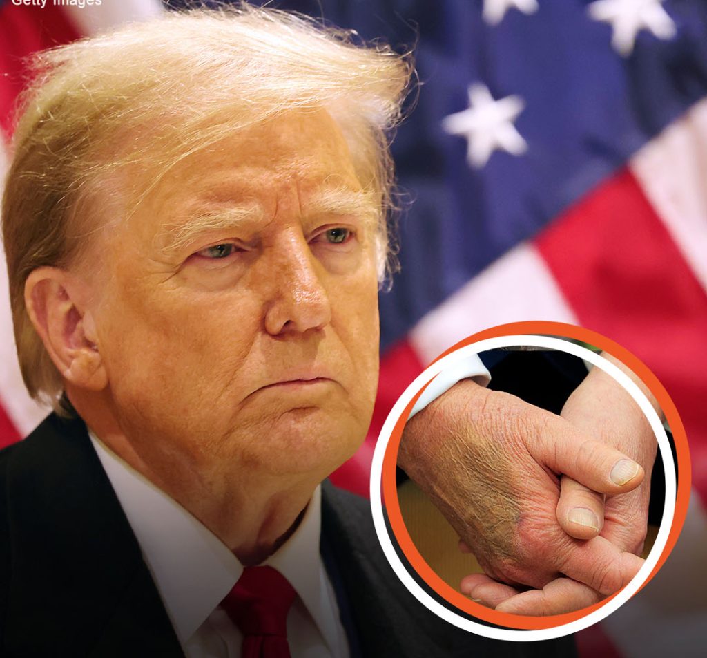 Photos of Trump from the official event were shared online and some users were quick to notice what appeared to be a large and discolored bruise on the back of his right hand. The sight of this bruise prompted speculation on social media over his health.