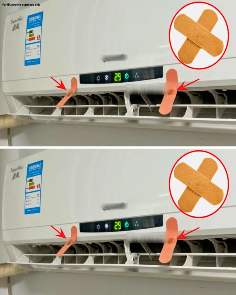 One surprisingly useful hack is placing Urgo patches on the air conditioner. Normally, Urgo—an adhesive bandage—is used to protect small wounds. But with a little creativity, it can serve a whole new purpose in daily life.