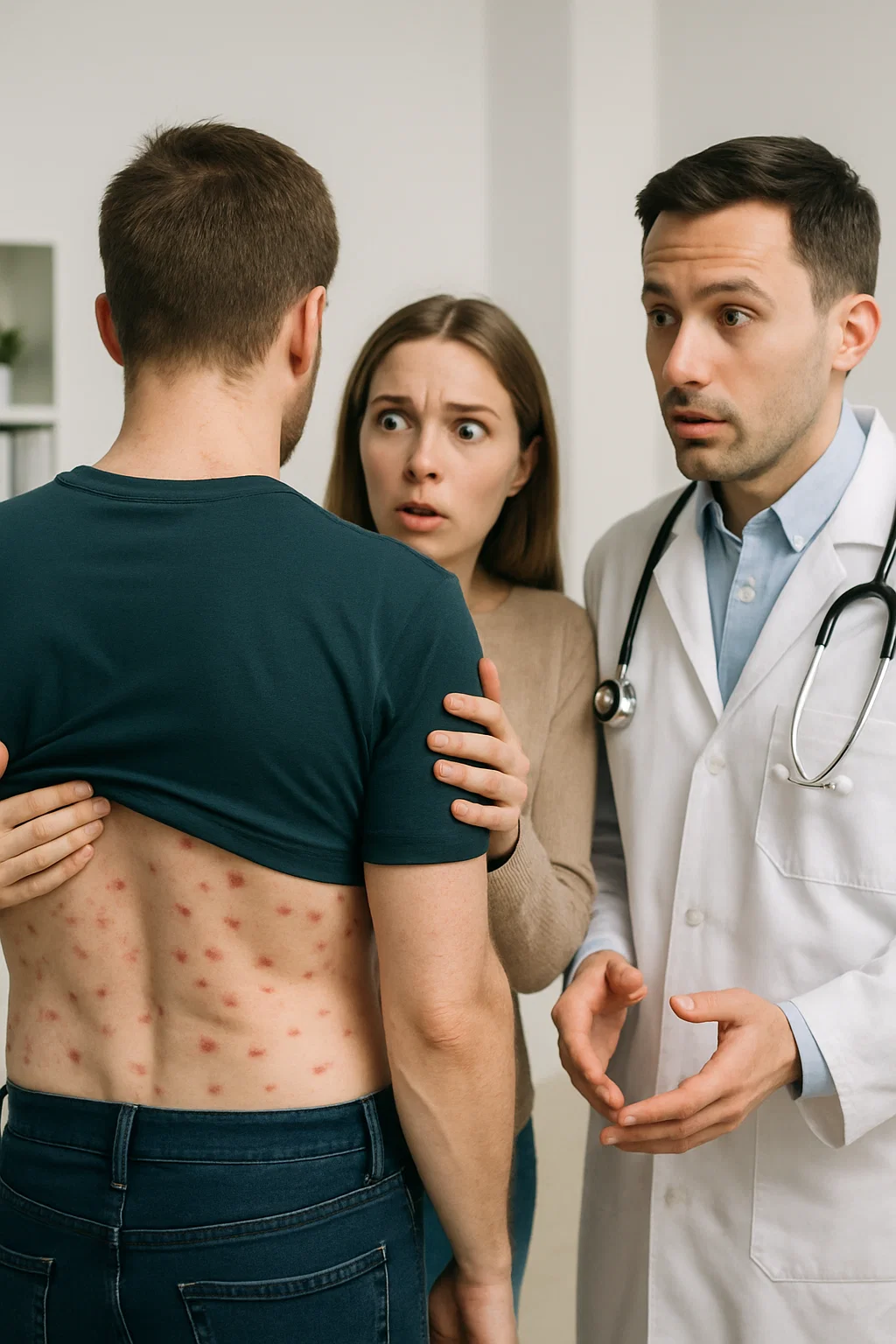 His back was covered in small red bumps. At first, there were only a few. But as the days passed, more began to appear — dozens of them, arranged in strange, symmetrical patterns. They looked eerily like clusters of insect eggs beneath his skin.